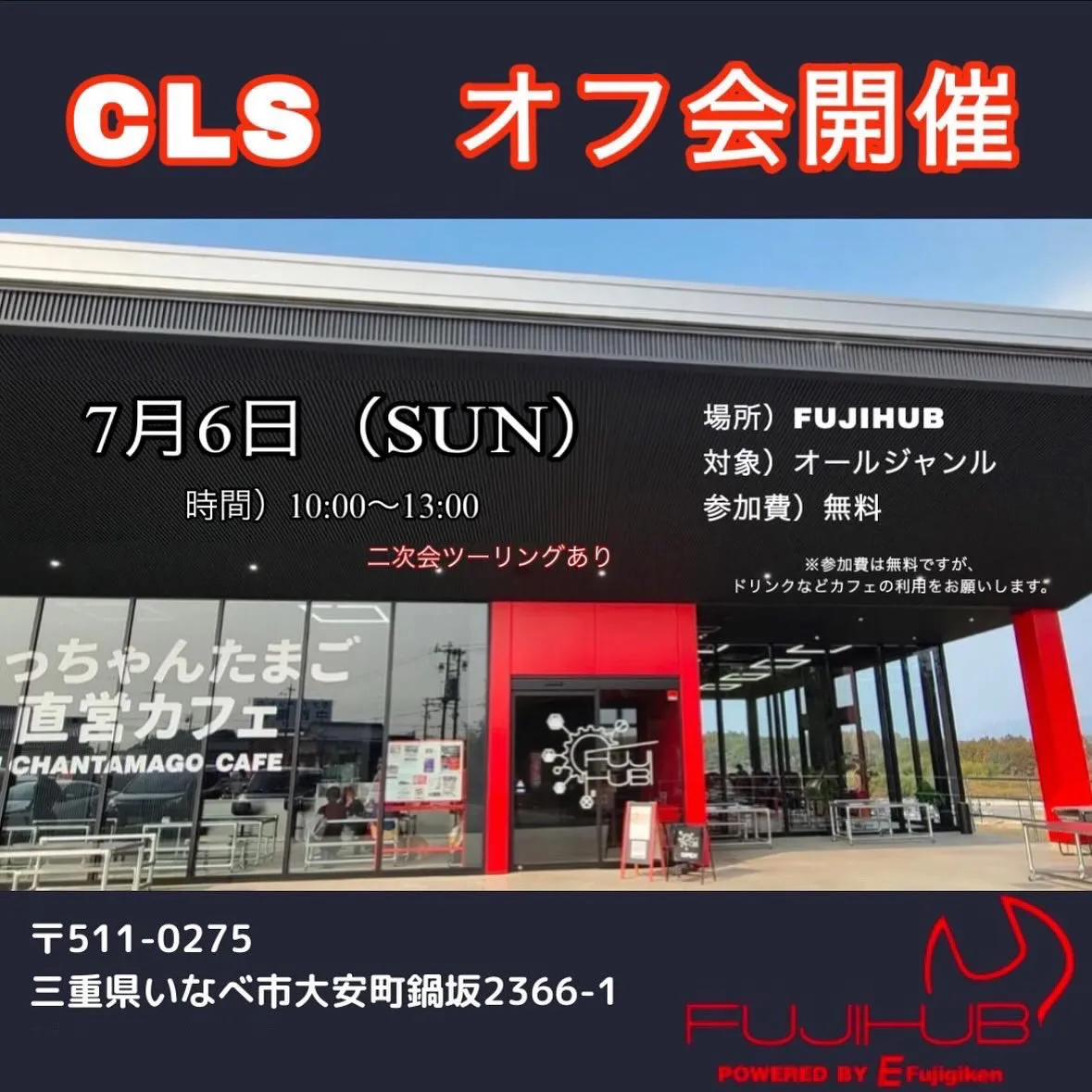 【告知】 【告知】第4回CLSオフ開催💪7月6日(日)(場所)FUJIHUB三重県いなべ市@fujihub_fujigiken(対象)オールジャンル(参加費)無料(時間)10時〜13時自由解散二次会ツーリング滋賀県加賀市ガレージカフェL…